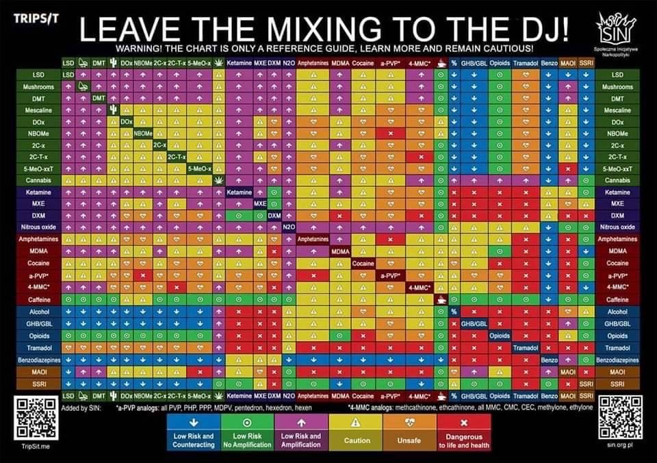 - การผสม ไซโลไซบิน (psilocybin) กับสารอื่นอาจส่งผลกระทบที่ไม่อาจคาดเดาต่อจิตใจและร่างกายได้ อาจนำไปสู่ผลกระทบที่เป็นอันตรายต่อจิตสำนึก การหายใจ หรือการไหลเวียนโลหิตของใครบางคน ซึ่งอาจเป็นอันตรายถึงชีวิตได้